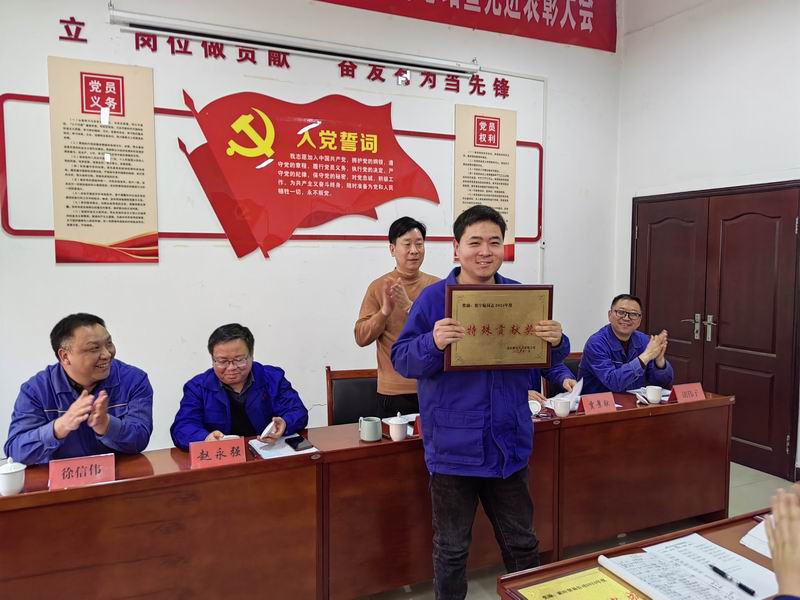 公司副總經(jīng)理趙永強宣讀了《關(guān)于兌現(xiàn)2024年度安全承包獎的決定》、《關(guān)于表彰2024年度先進班組和先進個人的決定》,對2024年年度工作中作出突出貢獻的炭材運行三班先進班組、柴彬等8名先進個人予以表彰,并頒發(fā)了先進集體獎等四項集體獎牌以示鼓勵。